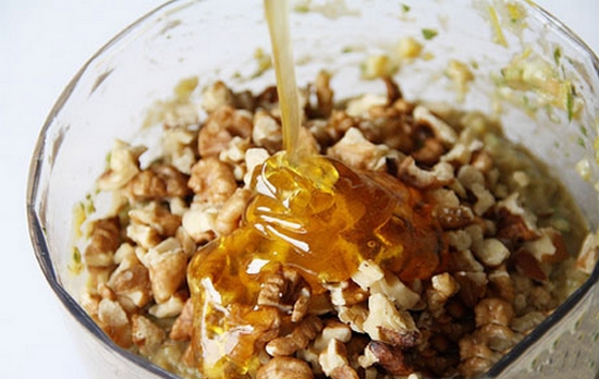 - Dodaj orzechy i miód.