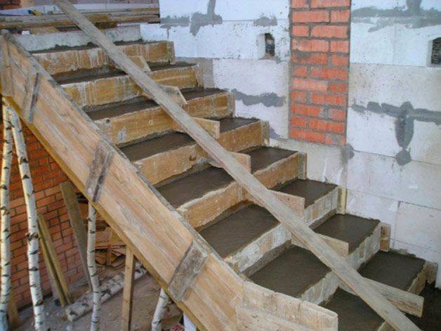 Najbardziej niezawodne i trwałe są betonowe schody, ale zajmują dużo miejsca i nadają się tylko do dużej piwnicy. Wykonanie takiej konstrukcji jest bardzo trudne. Po pierwsze, wymagana będzie produkcja szalunków. Po drugie, aby konstrukcja była trwała, musi być dobrze wzmocniona. A największym wyzwaniem jest praca z betonem. Będziesz musiał wykonać więcej niż jedną partię, a całe to rozwiązanie należy ręcznie opuścić do piwnicy, aby wypełnić każdy stopień.