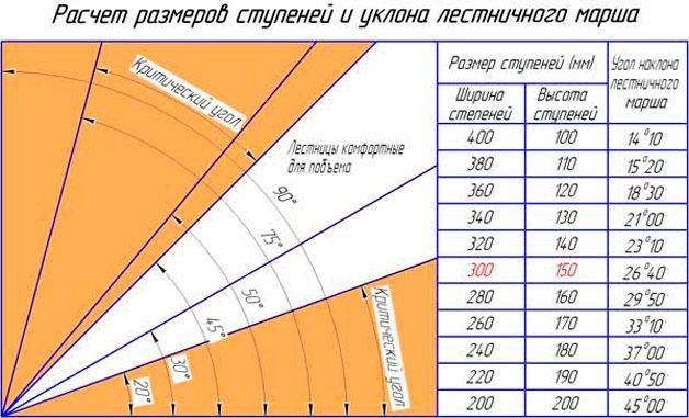 Przestrzegając tych zaleceń, okaże się, że zbudujesz wygodną klatkę schodową. Aby pomóc deweloperowi, zdjęcie przedstawia tabelę obliczeń dla biegu schodów.