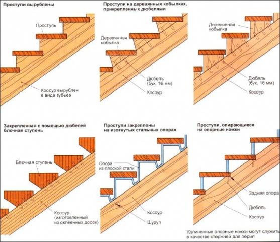 Do produkcji samych stopni stosuje się deskę o grubości 50 mm, pod warunkiem, że szerokość marszu wynosi 0,9-1,1 m. Zasadniczo podczas wykonywania obliczeń stosuje się wskaźnik, przy którym grubość krok jest dwadzieścia razy mniejszy niż szerokość schodów. Odchylenia są dozwolone tylko w kierunku zwiększania grubości. Jednak masa samej konstrukcji również wzrasta. Oznacza to, że podłużnice są wykonane z deski o dużym przekroju.