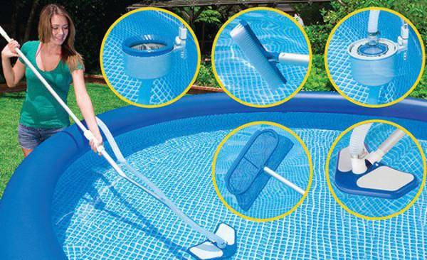 Na prywatnych podwórkach i domkach letniskowych zwykle instaluje się fontanny o maksymalnej średnicy lub długości 4,5 m. Wraz z misą właściciel będzie potrzebował zestawu do czyszczenia basenu, aby zebrać liście i inne duże zanieczyszczenia w wodzie. Najprostszy zestaw składa się z siatki i małego skimmera - odkurzacza zasysającego gruz za pomocą pompy. Wszystkie nasadki są wyposażone w drążek teleskopowy umożliwiający dostęp do dowolnego obszaru w basenie.