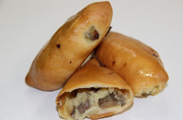 - Aby uzyskać nadzienie, ziemniaki miesza się z cebulą i grzybami.