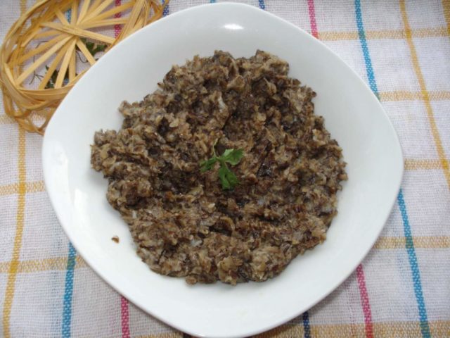 - Gotuj grzyby przez 20 minut w lekko osolonej wodzie. Po gotowości są miażdżone za pomocą blendera lub maszynki do mięsa.